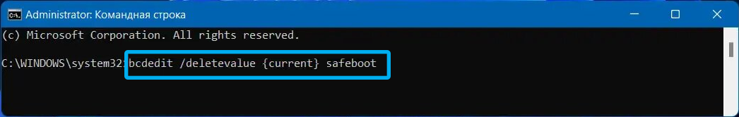 Чтобы вернуть обычный запуск ПК, прописываете в командной строке следующее: bcdedit /deletevalue {default} safeboot.