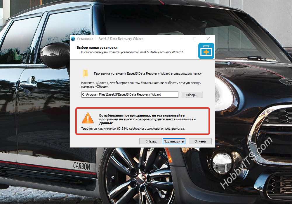 Установка и восстановление данных в EaseUS Data Recovery Wizard.