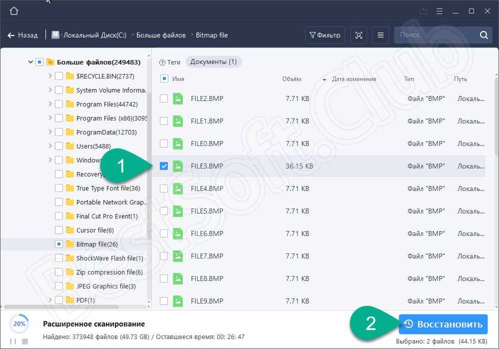 Чтоб легче было ориентироваться в огромном количестве найденных и готовых к восстановлению данных можно воспользоваться фильтром…
