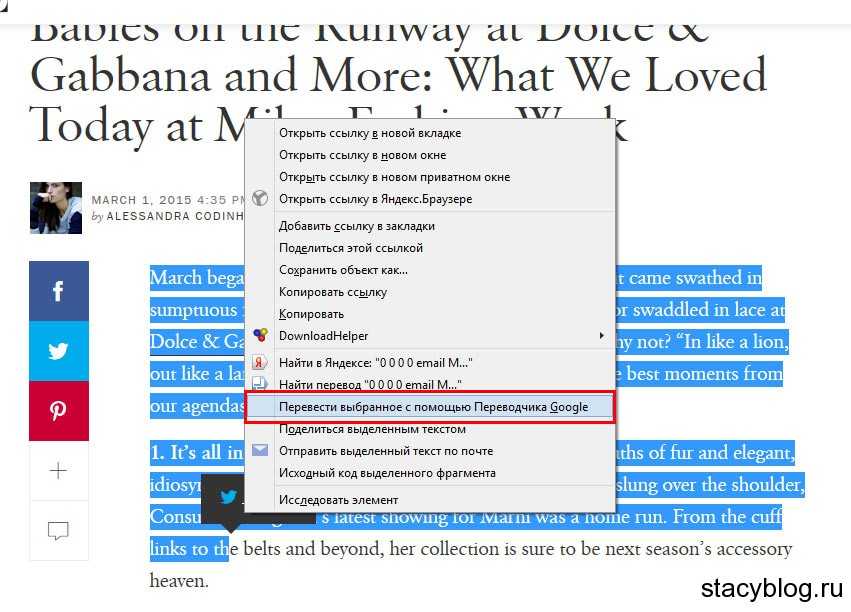 Открываем любой сайт на иностранном языке и справа нажимаем на букву T.