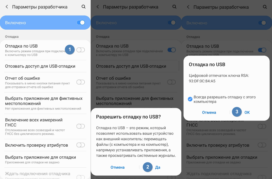- активировать режим «Для разработчиков» на мобильном девайсе;