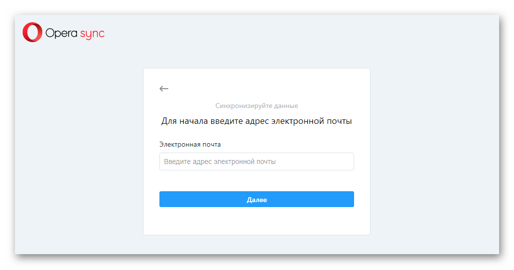 Чтобы использовать Opera для синхронизации данных, нужна учётная запись. Войти в Opera можно при помощи любого провайдера электронной почты.