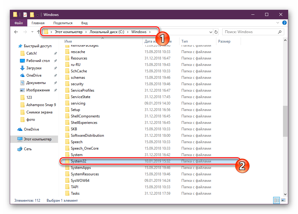 - Откройте «Проводник»любым удобным методом и перейдите по пути С:WindowsSystem32 .