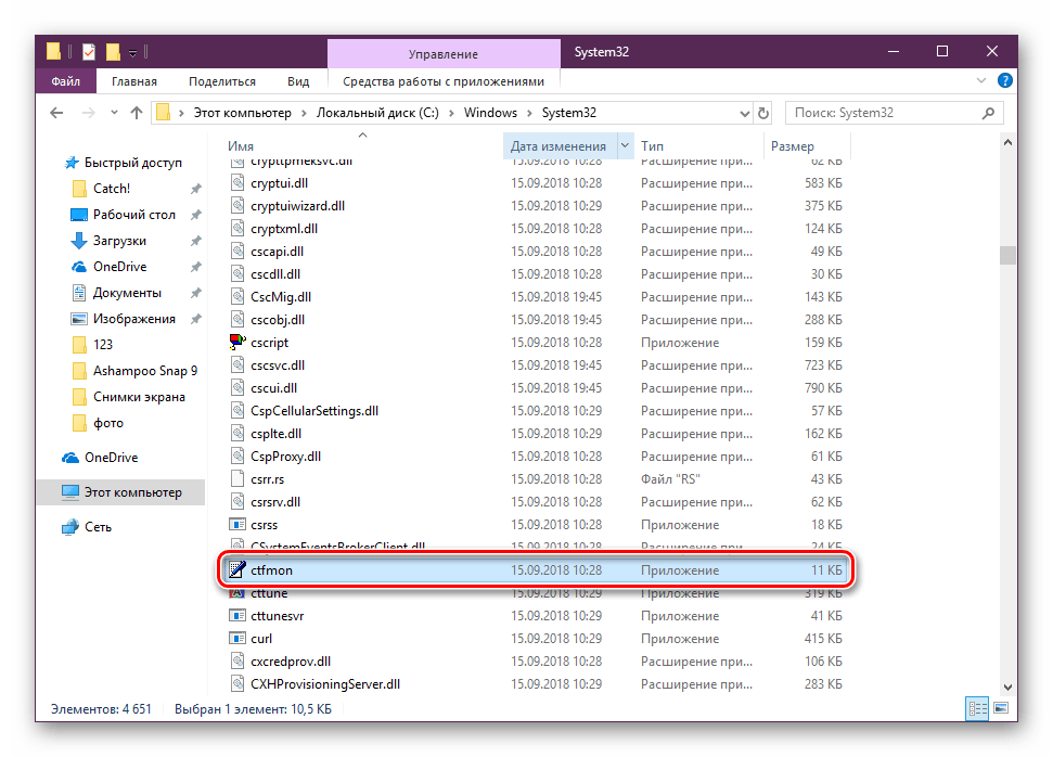 В папке «System32» найдите и запустите файл ctfmon.exe.
