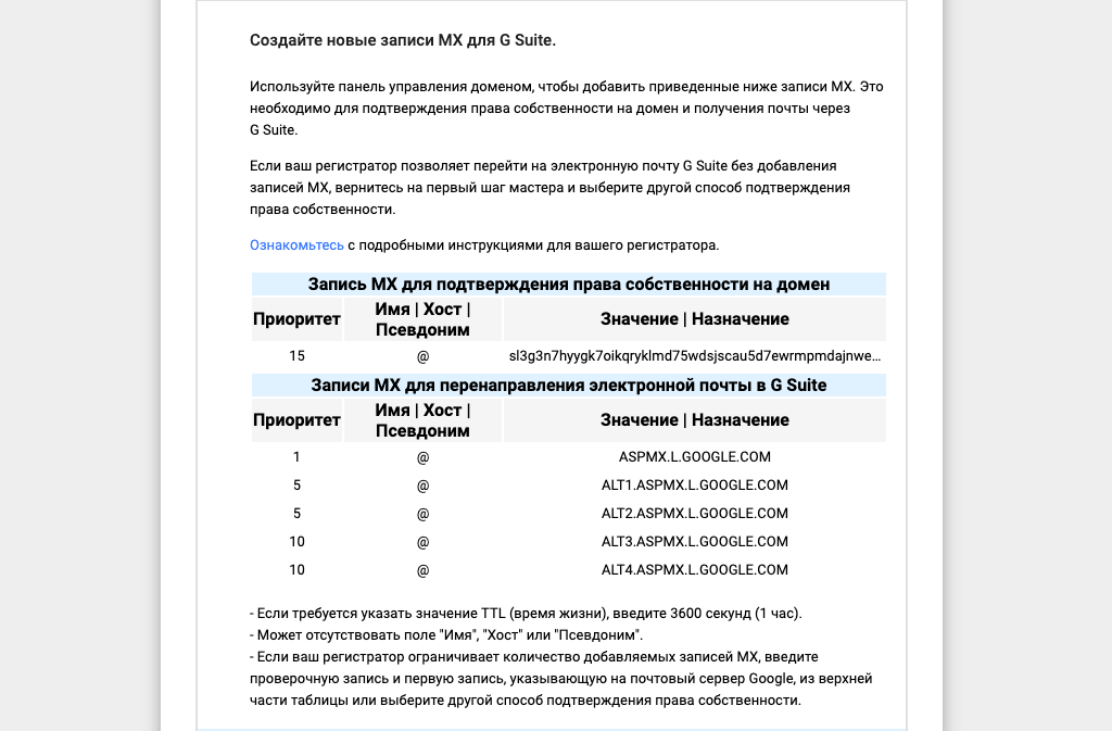 Варианты подключение домена к Google Suite