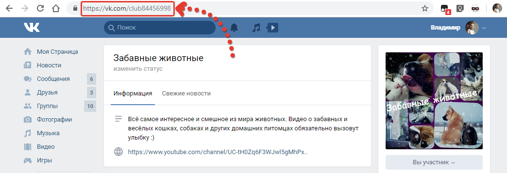 Свой ID можно получить, открыв главную страницу профиля ВКонтакте (раздел «Моя страница») и скопировав цифры после «id» из адресной строки браузера: