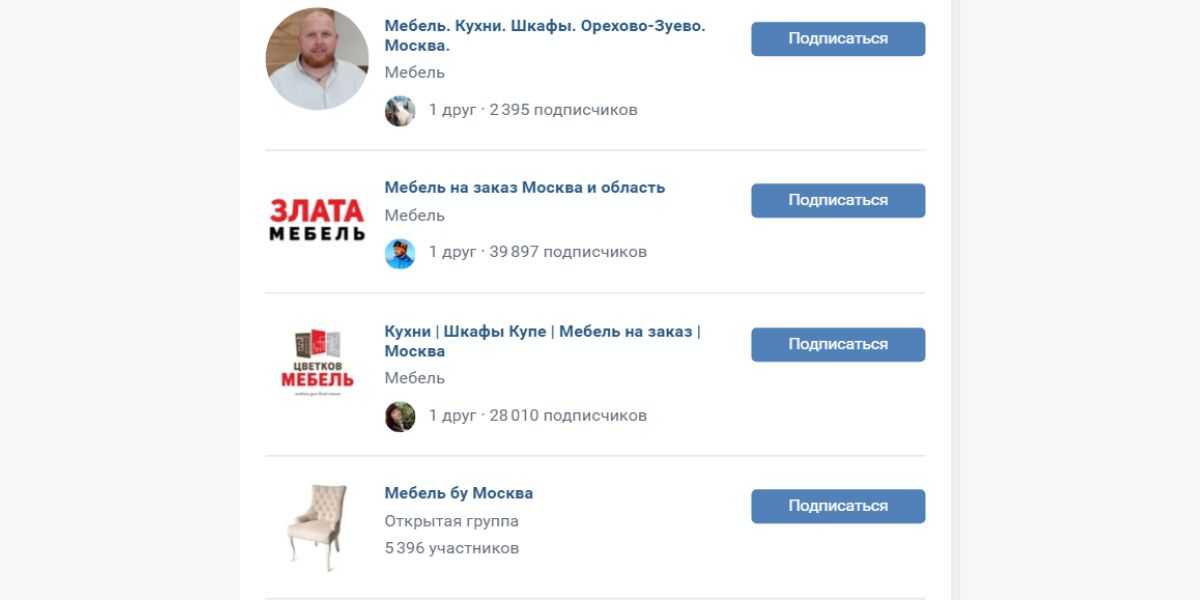 Например, если вы предлагаете подписчикам фурнитуру для мебели, есть смысл поискать группы, в которых продают мебель б/у или делают на заказ. Им будет выгодно сотрудничать с вами и проводить взаимный пиар, если у них нет такой услуги или ассортимент совсем маленький.