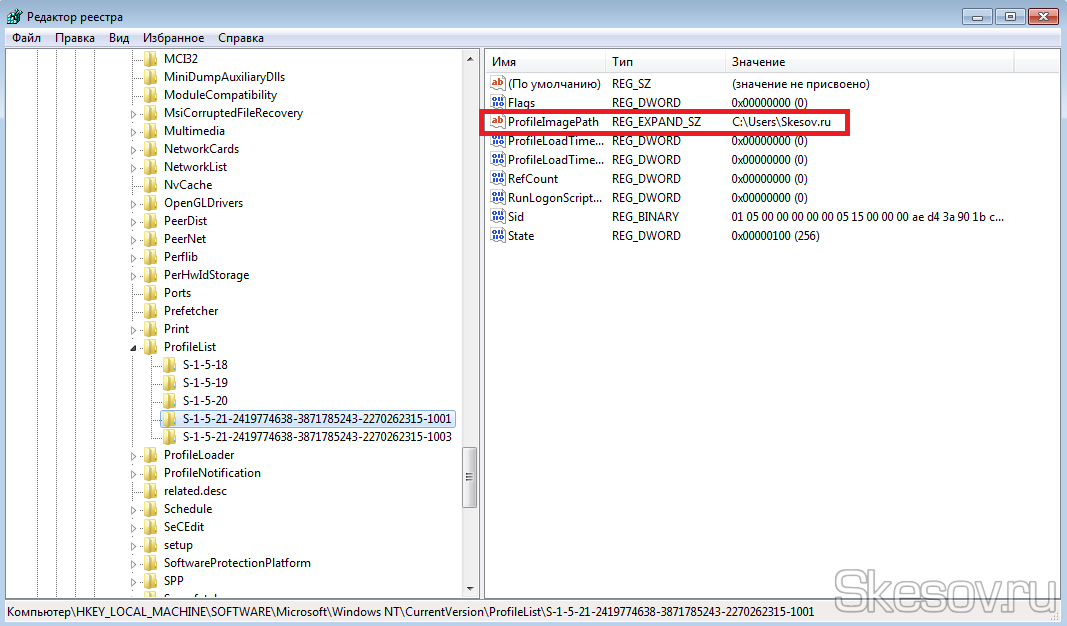 Перенос профиля пользователя на другой локальный диск в Windows (Способ 1. Изменение значения в реестре)