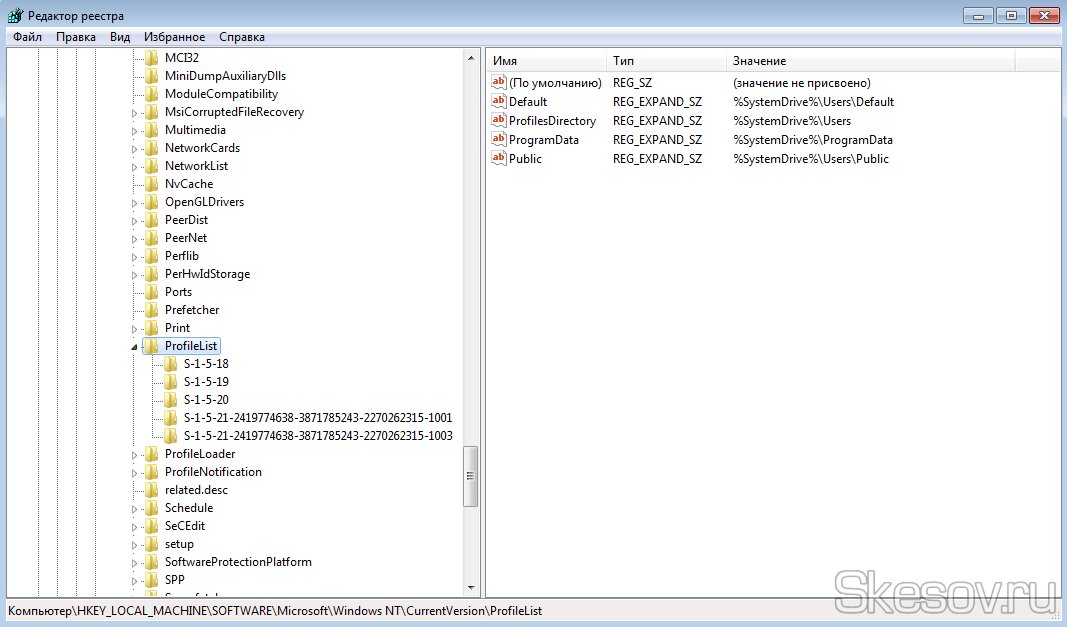 - В «ProfilesDirectory» нужно указать букву диска, на который будет скопирован каталог «Users» (например, если нужный вам раздел — D, то ничего менять не нужно, а если E, то замените «D» на «E» и оставьте остальную часть строки (Оставить все как есть).