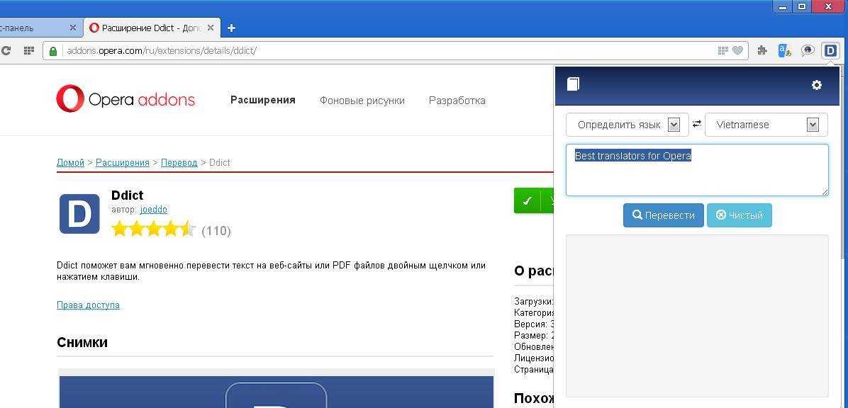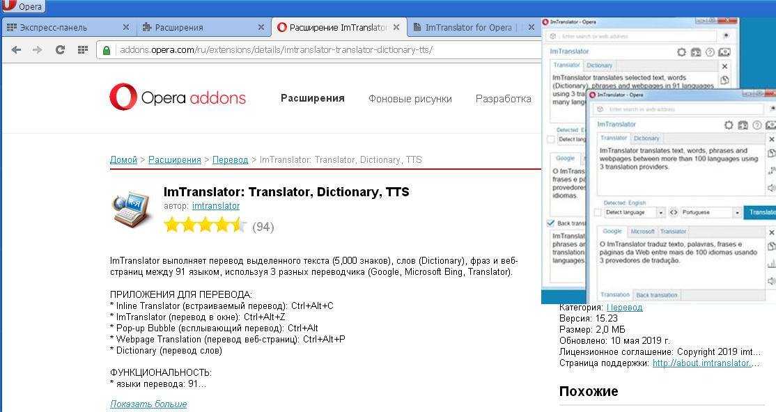 Таким же образом можно установить в Оперу любое другое дополнение, выполняющее функции переводчика.
