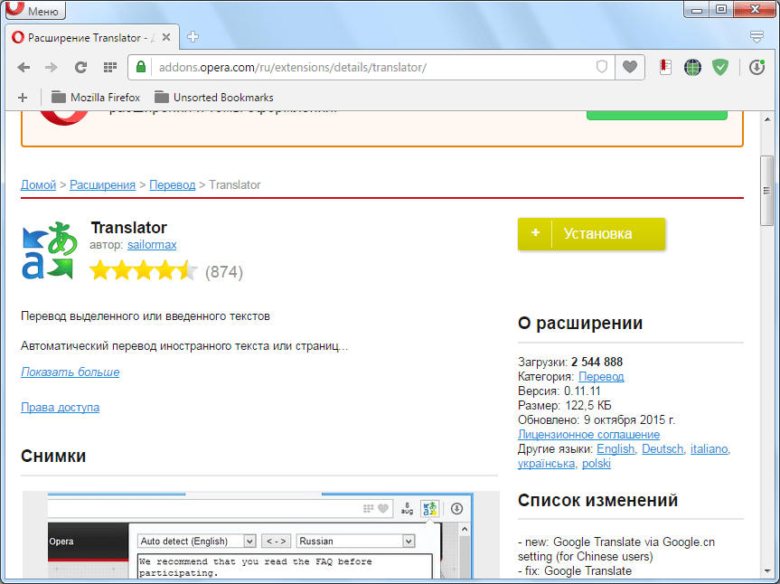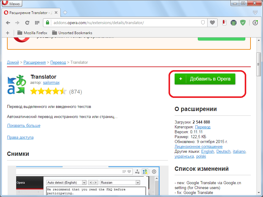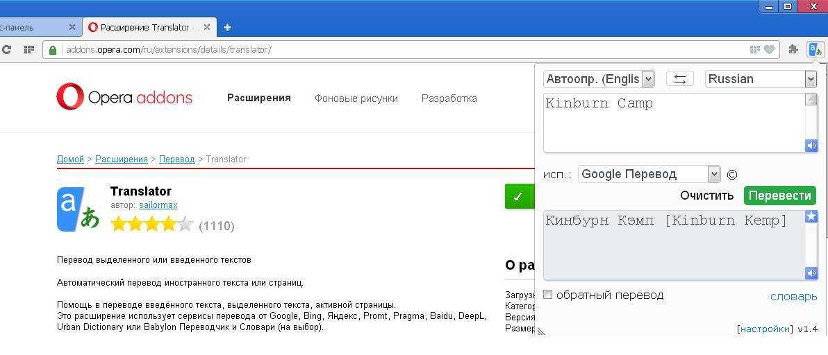 - Открыть страницу https://addons.opera.com/ru/extensions/details/google-translate/.