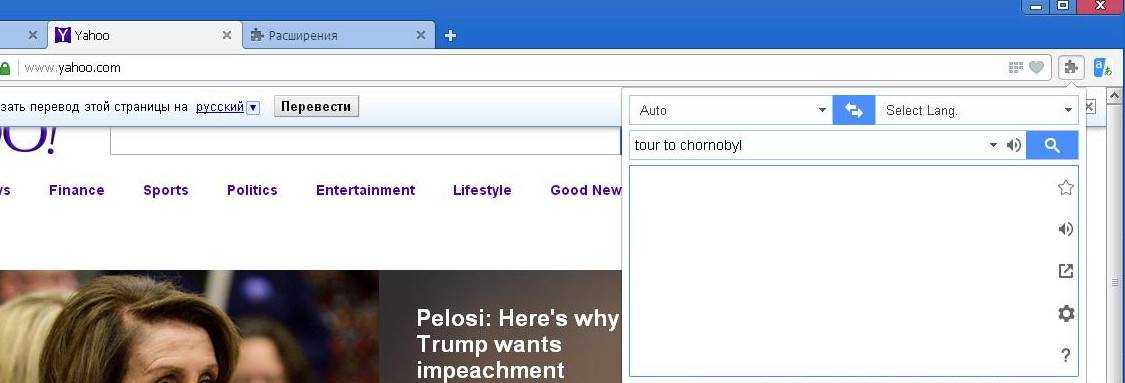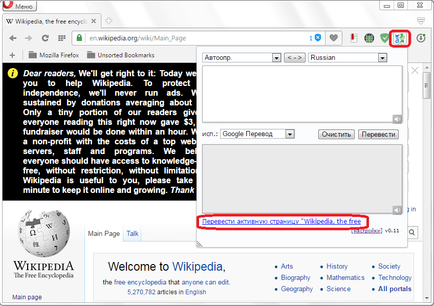 В отличие от предыдущего расширения, дополнение Translator может не только переводить веб-страницу в целом, но и делать перевод отдельных текстовых фрагментов на ней, а также переводить текст из буфера обмена операционной системы, вставленный в специальное окно.