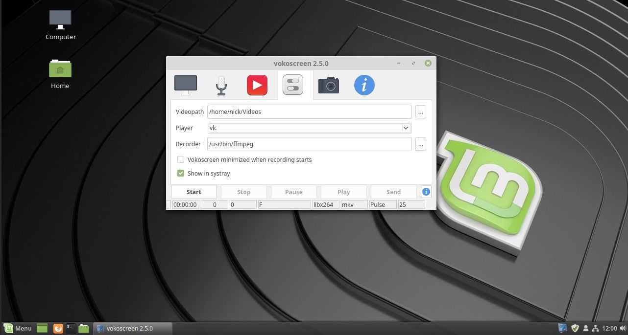 Наконец, вы можете выбрать, показывать ли Vokoscreen в системном трее.