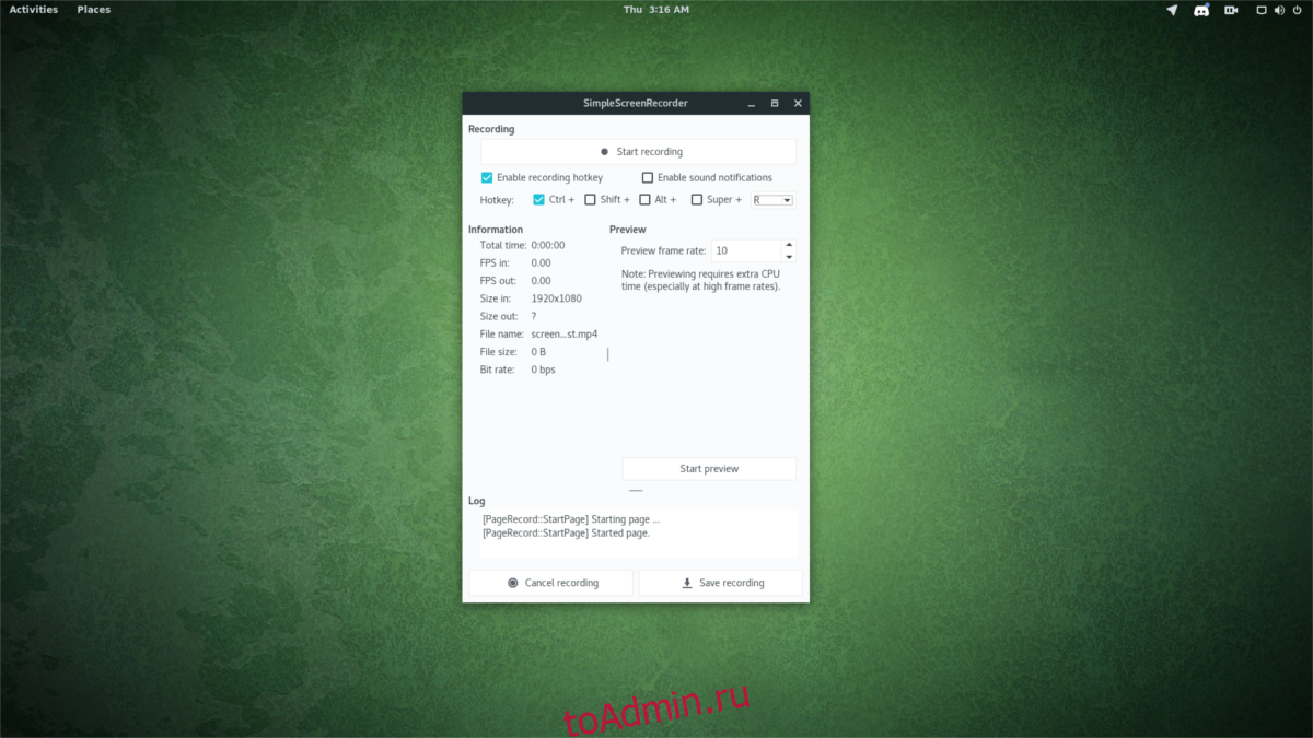 - Третий вариант — использовать горячую клавишу Super+Ctrl+R во время работы Kazam.