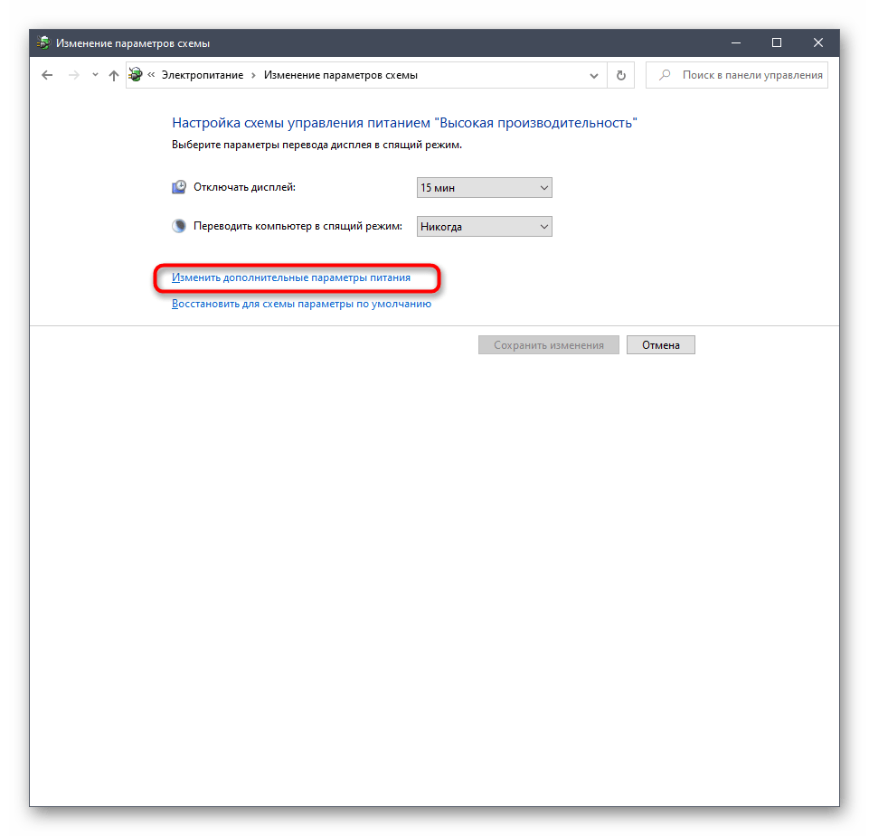 Чтобы изменить настройки существующего плана, откройте Панель управления -> Электропитание. Напротив активного плана (выделен радиокнопкой) нажмите Настройка плана электропитания -> Изменить дополнительные параметры питания.