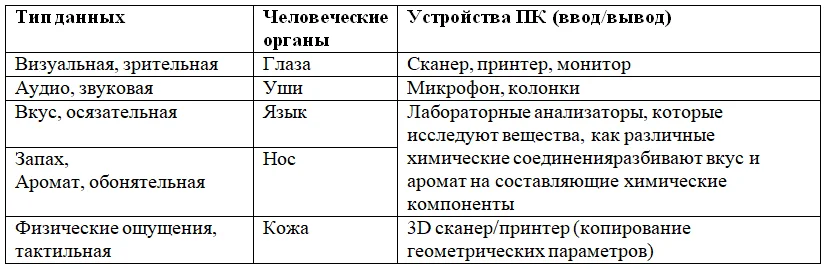 Давайте отдохнем и попробуем провести аналогию между органами чувств человека и устройствами компьютера: