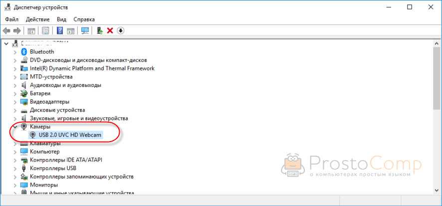 Если камеры в диспетчере устройств Windows 10 нет вообще (но она физически есть на вашем устройстве), то она либо сломалась (отключена), либо нужно установить драйвер. Драйвера можно скачать с сайта производителя ноутбука, или самой камеры. Качайте драйвер строго для своей модели и для Windows 10. После установки драйвера все должно заработать.