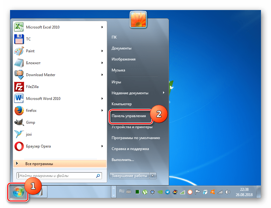 - Щелкните «Пуск» и переместитесь в «Панель управления».