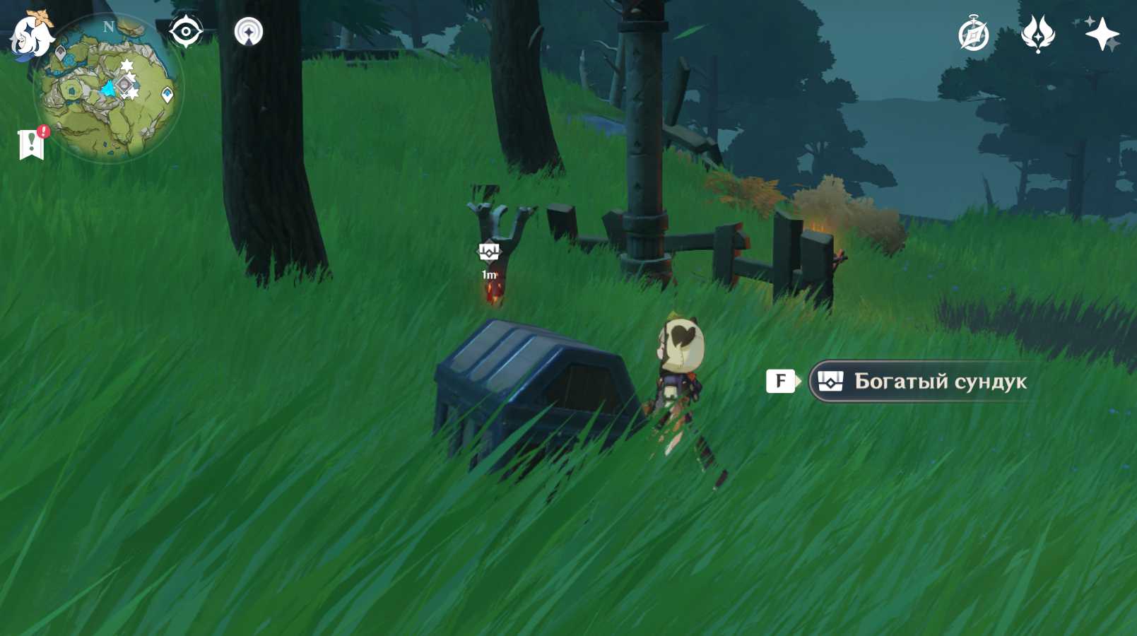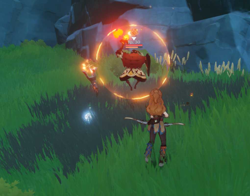 Здесь вы найдете семь сильных врагов, включая Зеркальную Деву Фатуа. Лучше сначала столкнуться с последним, так как он может заморозить или обездвижить вас. Как только вы победите своих противников, вы увидите ценный сундук.