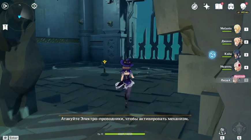 - Теперь вы должны получиться на электро-персонажа чтобы активировать все 4 столба (оптимально использовать Лизу).