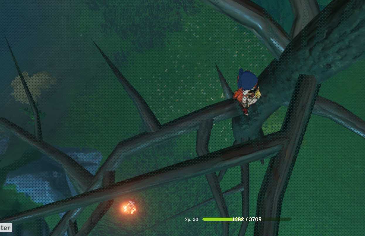 - Войдите в него, и по пути вы увидите корень дерева, по которому можно забраться в комнату с переключателями.