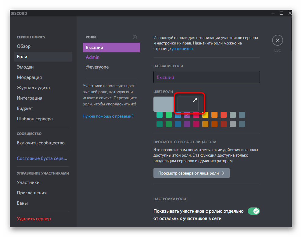 Способ 3: Изменение цвета роли
