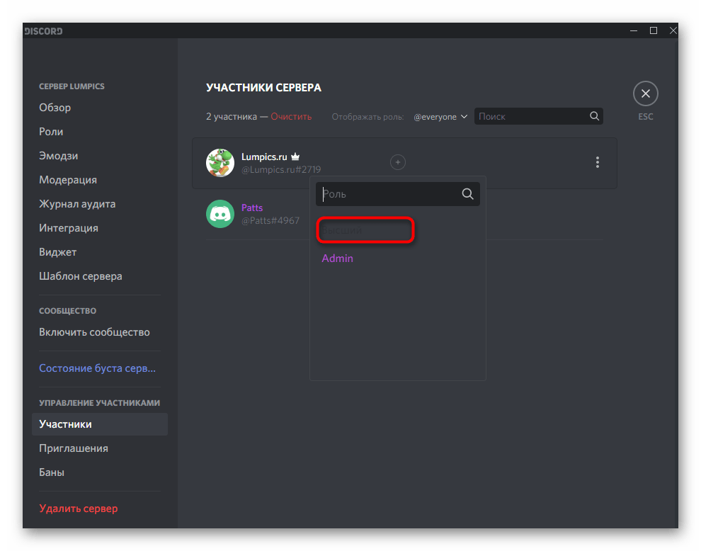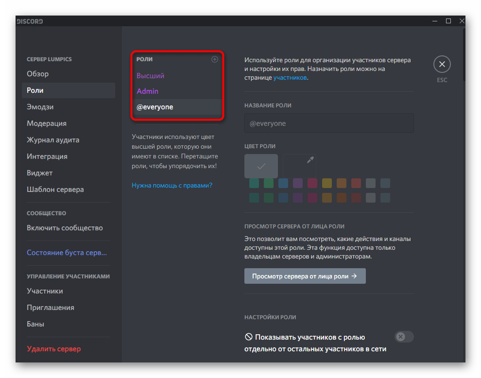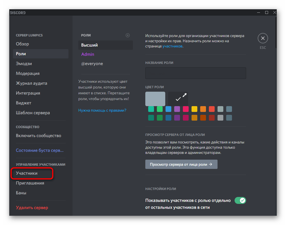 Из названия этого метода уже понятно, что подойдет он только юзерам, обладающим привилегиями на сервере, чтобы изменять настройки любой роли. Им может являться создатель или администратор, который через настройки выполняет соответствующие изменения.