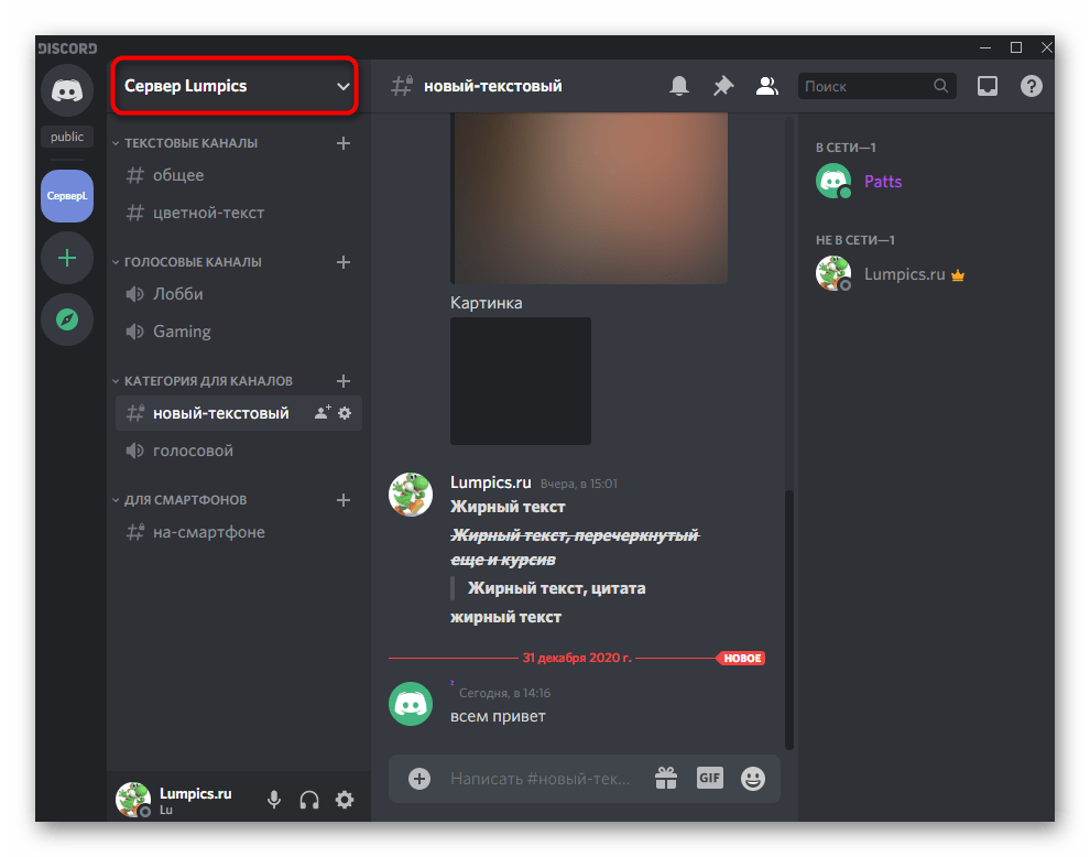 - Нажмите по названию своего сервера, открывая тем самым его меню.