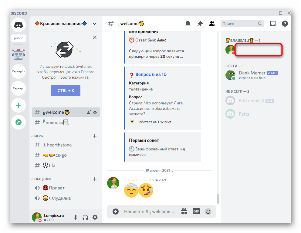 Пользователи десктопной версии Discord имеют больше путей в плане создания невидимого ника, поскольку обладают всеми необходимыми возможностями, чтобы задействовать специальный символ или особенности предыдущих версий программы. Мы разберем каждый способ отдельно, а вам останется только подобрать оптимальный.