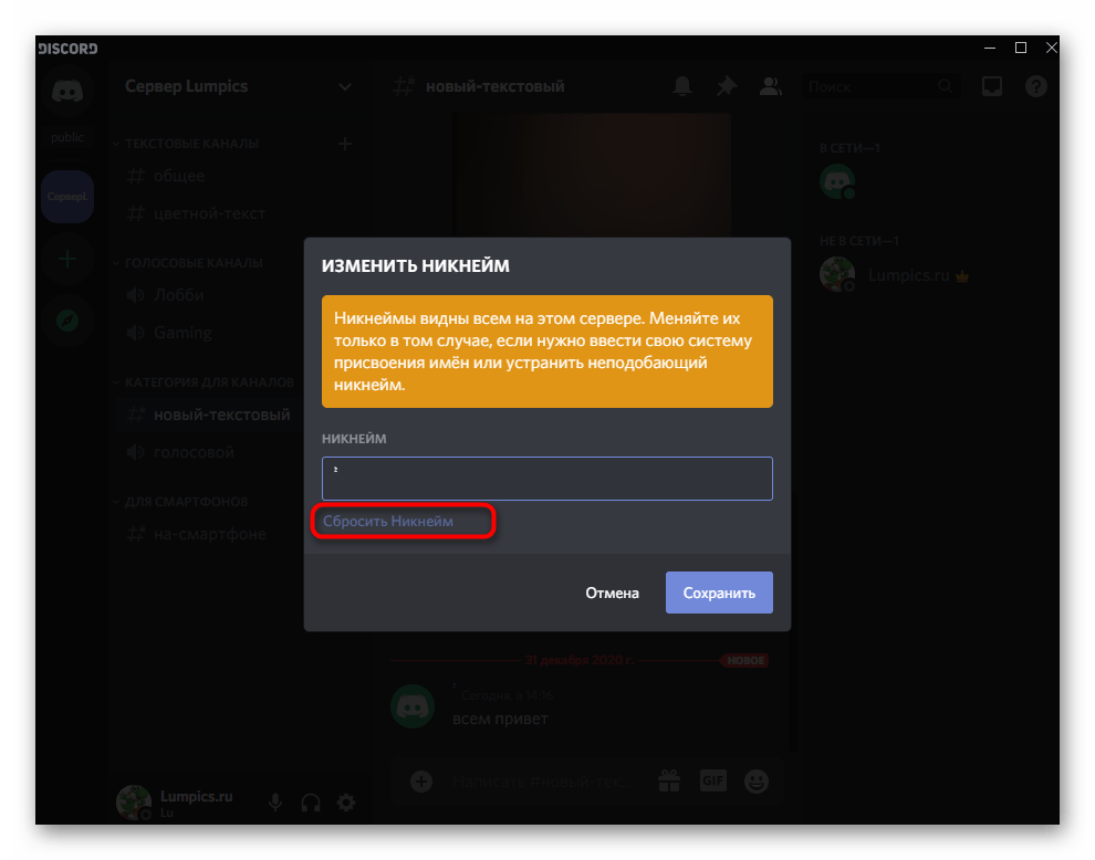 Дополнительно уточним, что просто так очистить поле с ником от этого символа не получится, поэтому используйте кнопку «Сбросить Никнейм».