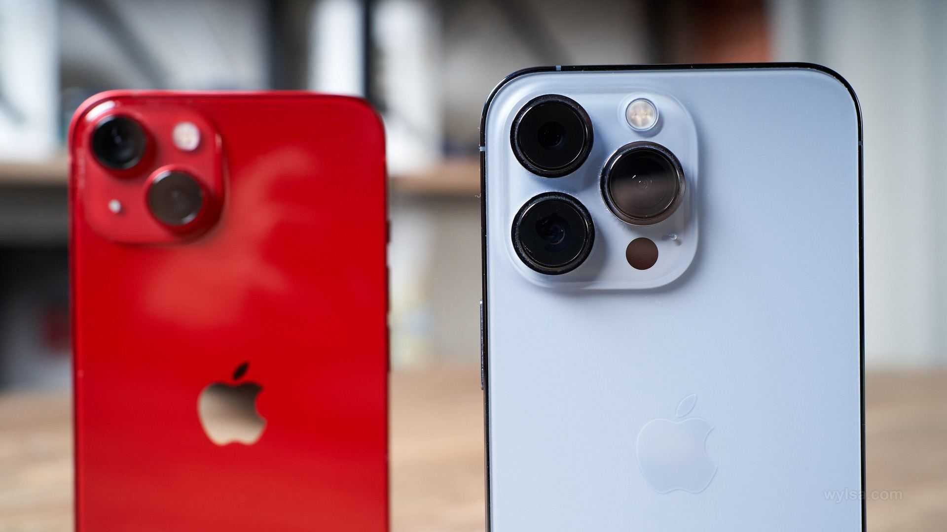 - Основная камера, апертура: iPhone 13 – ƒ/1.6 (хуже), iPhone 13 Pro – ƒ/1.5 (лучше);
