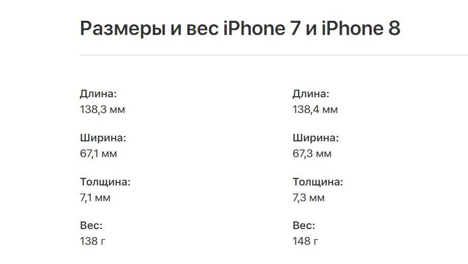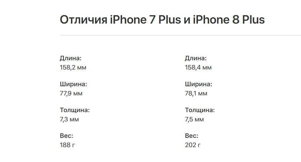 Тщательное изучение описаний смартфонов позволяет заметить незначительную разницу в габаритах и массе – iPhone 7 на 0,1 мм короче, на 0,2 мм уже, на 0,2 мм тоньше и на 10 грамм легче, чем iPhone 8. С точки зрения эксплуатации, такие отличия играют роль лишь при выборе аксессуаров.