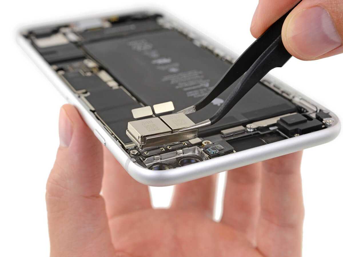 На шлейфе фронтальной камеры iPhone 7 и на новых моделях так же расположены элементы для работы Face ID — еще одна ИК-камера, проектор точек для распознавания лица и ИК-Излучатель. Меняется все это, как Вы уже догадались, в сборе. Симптомы поломки фронталки на iPhone 7 и методы решения этой проблемы такие же, как и у основной. Иногда встречаются случаи, когда из-за неисправности одной из фотокамер не работают обе.