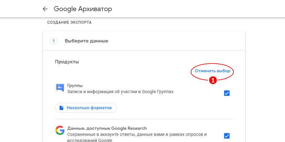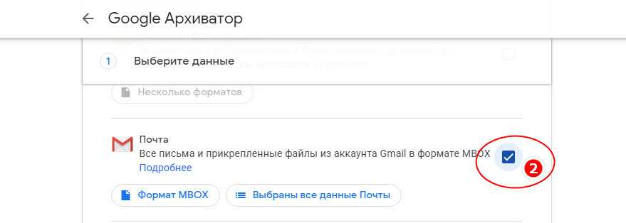 Перейдите в браузере по адресу takeout.google.com/settings/takeout и первым делом отмените выбор всех продуктов, ведь вам нужна только почта.
