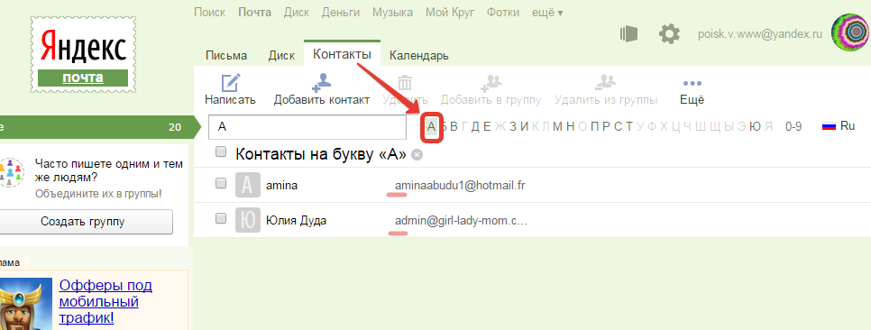 Чтобы создать группу, перейдите на вкладку Контакты. Написать письмо группе очень просто: введите первые буквы ее названия, и «Яндекс. Почта» предложит вам добавить эту группу в список адресатов письма», — говорится в сообщении компании. В одну группу можно добавить не более 35 адресов.