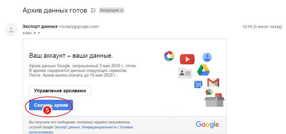 Вытащить и сохранить что бы то ни было, в том числе и почту, из аккаунта Goggle можно с помощью родного сервиса Google Архиватор.