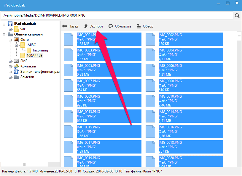 Шаг 6. Выберите необходимую для экспорта информацию, нажмите «Экспорт» и укажите место, куда эти данные будут сохранены