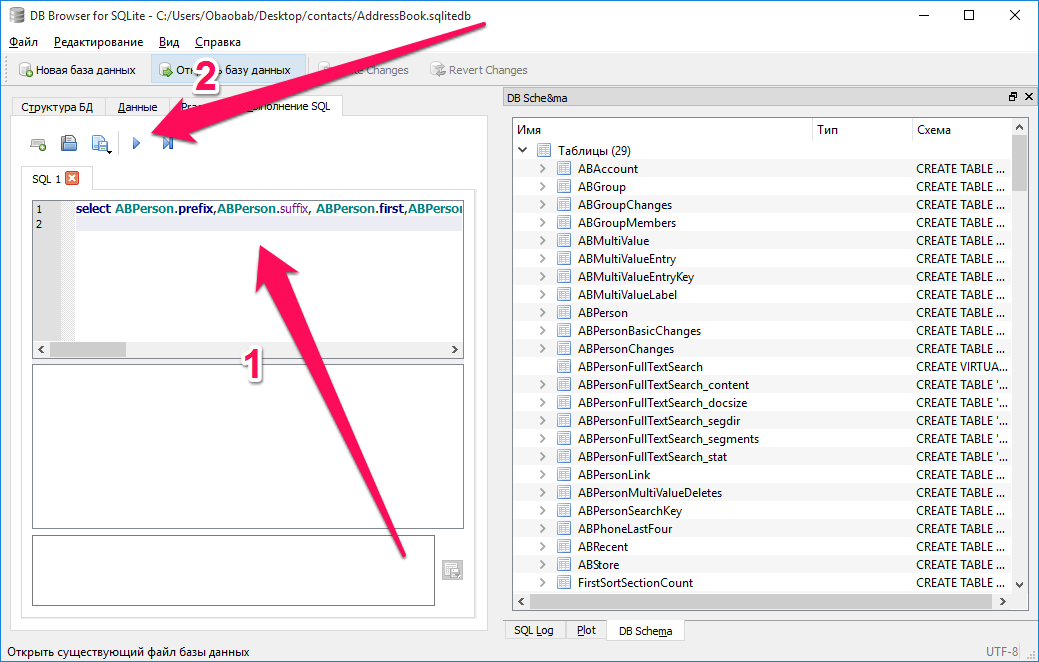 Шаг 3. Нажмите Ctrl + O и выберите файл контактной книги в формате .sqlitedb