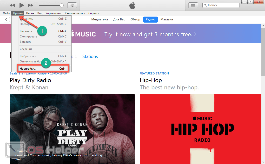 - Шаг 1. Раскрываем iTunes, переходим в настройки.