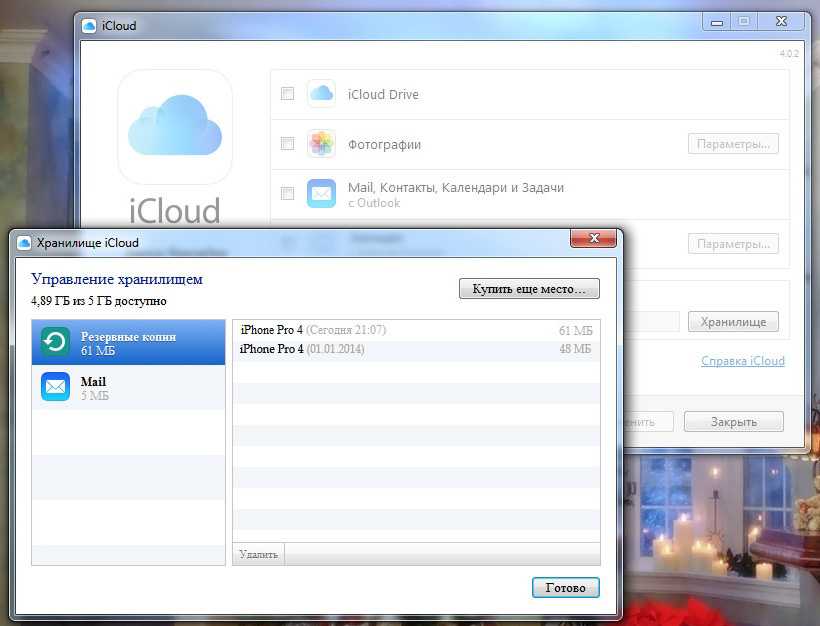 Окно iCloud с доступными копиями