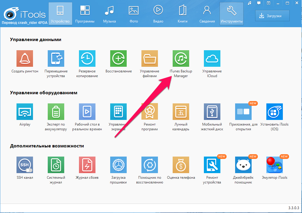 Шаг 4. Нажмите на кнопку iTunes Backup Manager