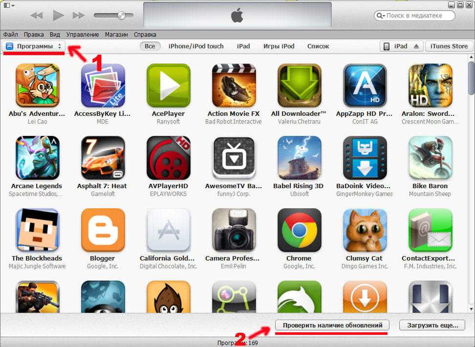 На компе в окне iTunes отобразится перечень программ, установленных на iPhone. Нажмите на клавишу «Проверить наличие обновлений» – она находится на нижней панели. Ежели для приложения доступны апдейты, покажется соответственное окно. Ежели обновлений нет, ничего не произойдет.