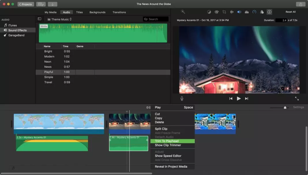 Вы можете использовать действия в строке меню, а также быстрые команды, чтобы вносить изменения в свои видеоклипы в iMovie на Mac. Это удобно, так что вы можете использовать то, что наиболее удобно для вас.