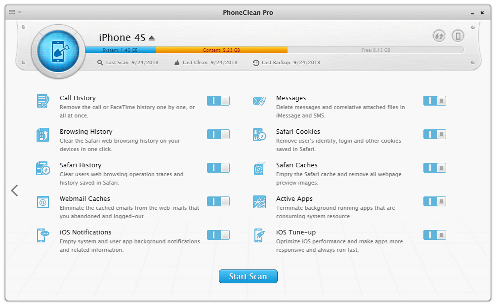 PhoneClean – это программа для компьютера, которая позволяет выполнить глубокую очистку кэша, незаметного для других приложений. Для оптимизации работы Apple iPhone потребуется:
