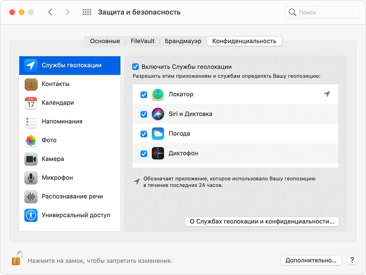 Отключение показа рекламных объявлений на основе местоположения на Mac