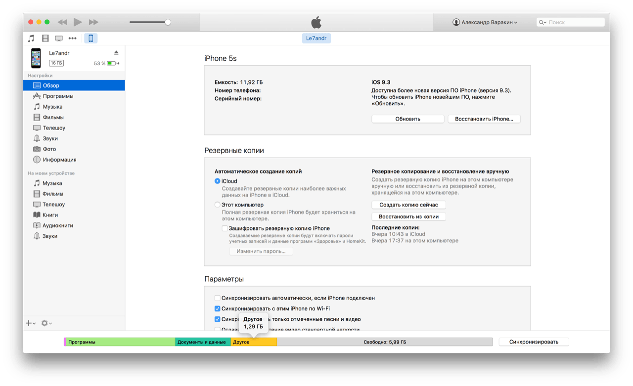 - Включив iTunes, синхронизируйте приложение с Айфоном.