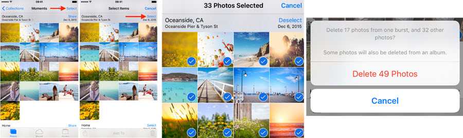 - Нажмите «Выбрать», а затем «Удалить все», чтобы удалить удаленные фотографии с iPhone.