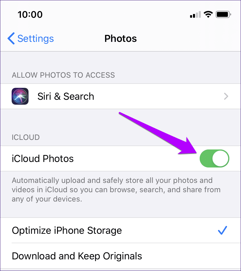 На iPhone и iPad перейдите в «Настройки iPhone/iPad» > «Фотографии». Затем включите переключатель рядом с iCloud Photos.