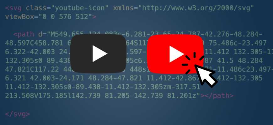 Тег <svg> используется как контейнер для хранения SVG графики. При помощи тега <path> и его атрибутов создается фигура. Посмотрите, как выглядит иконка YouTube в inline формате.