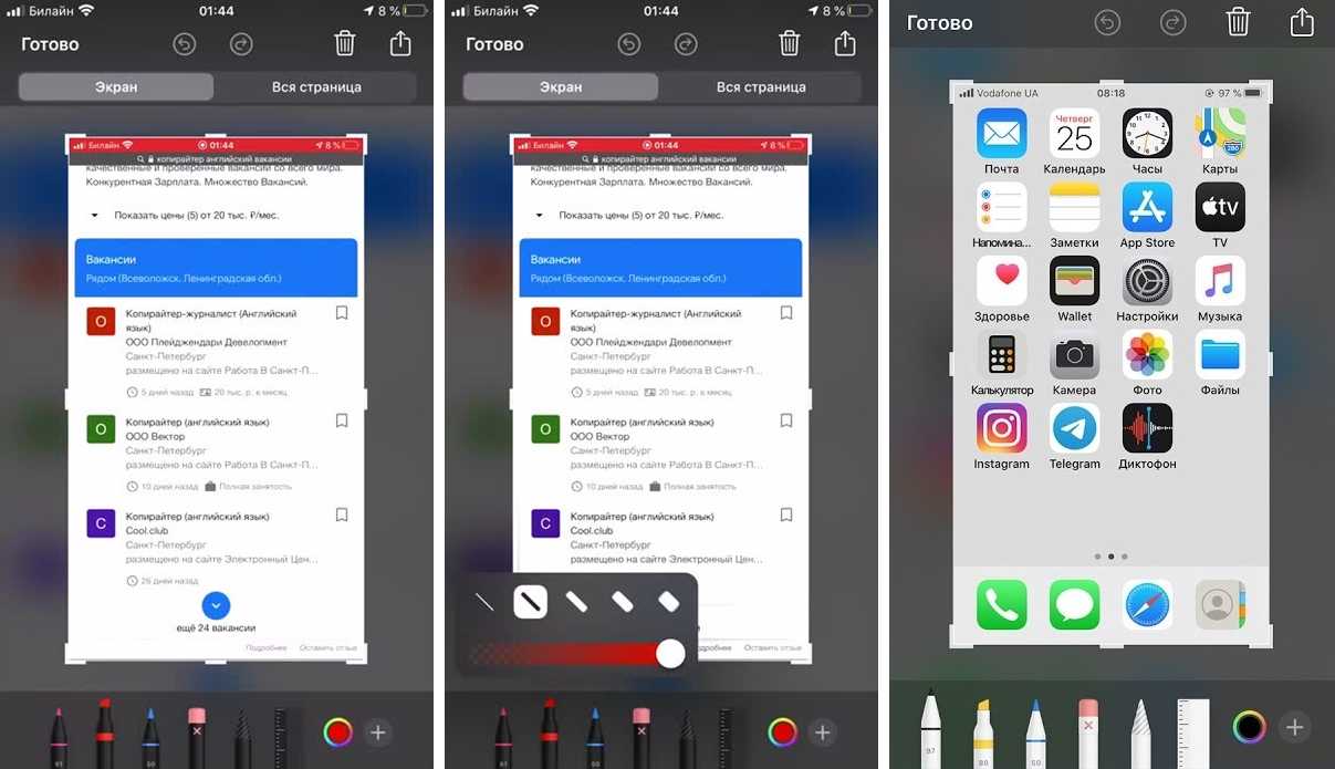 Изменить снимок экрана можно не только до сохранения, но и после, причем программных возможностей для постпродакшна в iOS гораздо больше.
